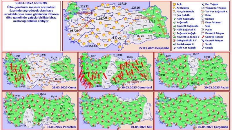 Adana Meteoroloji Bölge Müdürlüğü, 26 Mart – 2 Nisan tarihlerini kapsayan haftalık hava tahmin raporunu paylaştı.
