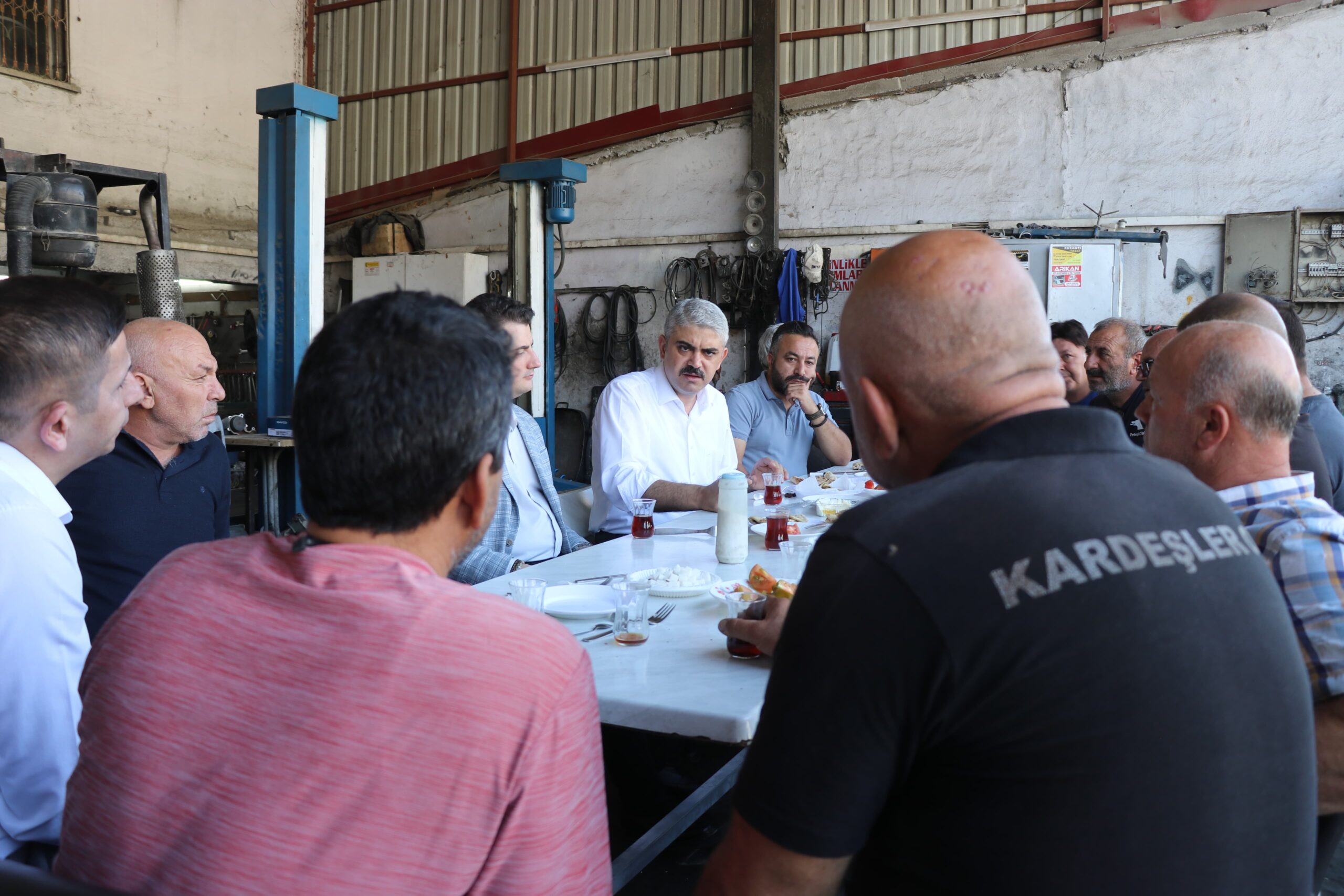 Sanayi esnafının daveti üzerine Sanayiye giden Kaymakam Güdek ve Belediye Başkanı Avan, esnafın güler yüzü ile karşılaştı. Kaymakam Ekrem Güdek ve Belediye Başkanı Ali Avan, kahvaltı sofrasına oturmadan önce tüm esnafları ziyaret ederek hayırlı işler dileklerinde bulundular.
