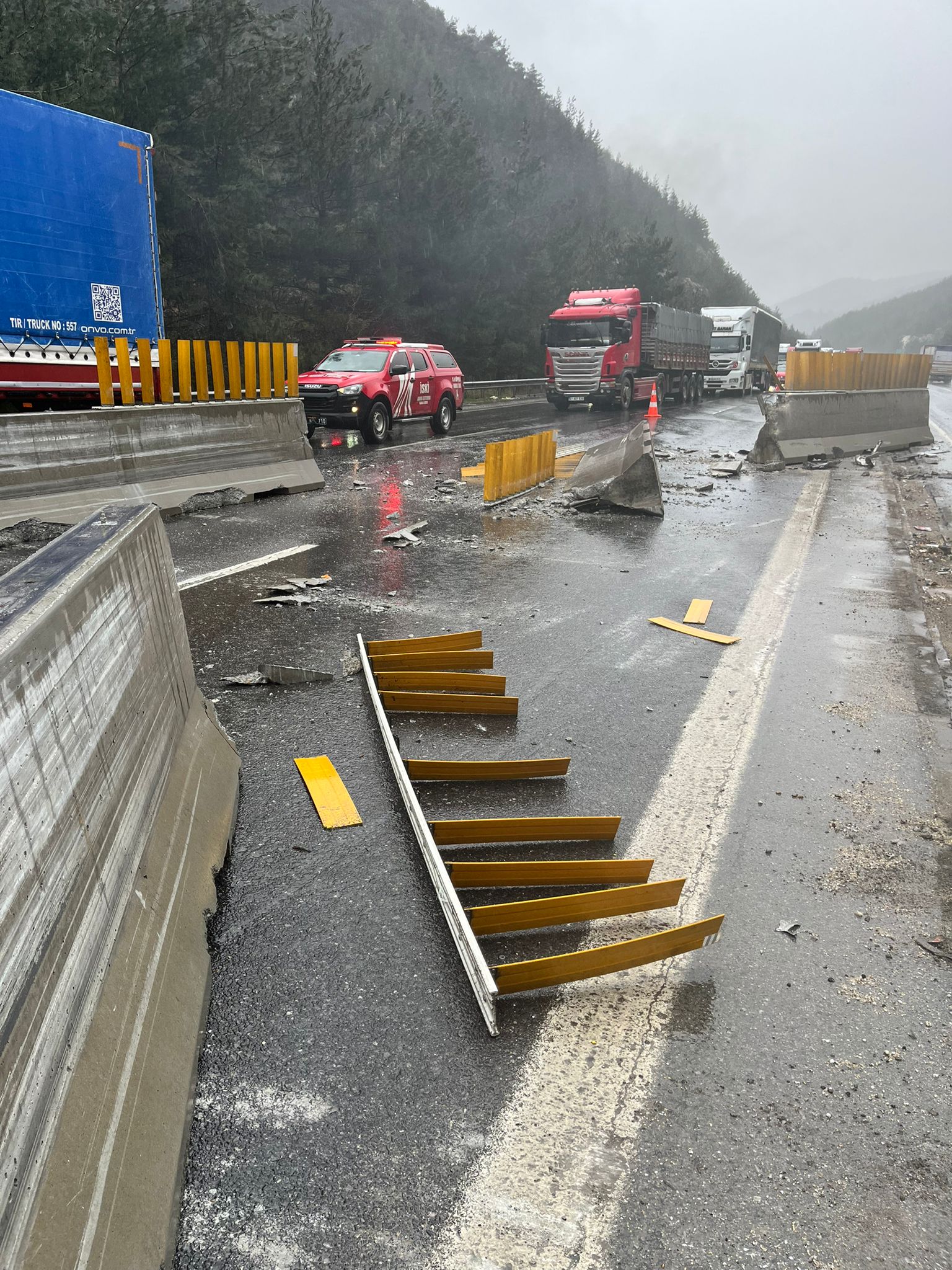 Çarpmanın etkisiyle yerinden sökülen beton bariyerler otoyol içerisine devrilirken, yola savrulan parçalar nedeniyle Ankara istikametinde 2 şerit trafiğe kapandı. Kazayı gören diğer sürücülerin ihbarı üzerine olay yerine 112 Acil Sağlık ve itfaiye ekipleri sevk edildi.