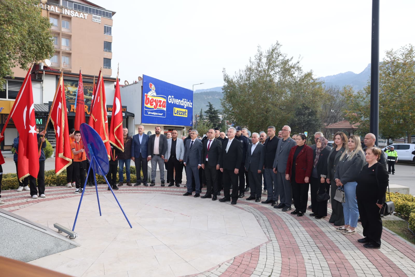 Program kapsamında ilk olarak çelenk sunma töreni gerçekleştirildi. İlçe Milli Eğitim Müdürü Fatih Sezgin’in Atatürk Anıtı’na çelenk sunmasıyla başlayan tören, saygı duruşunun ardından İstiklal Marşı’mızın okunmasıyla sona erdi.