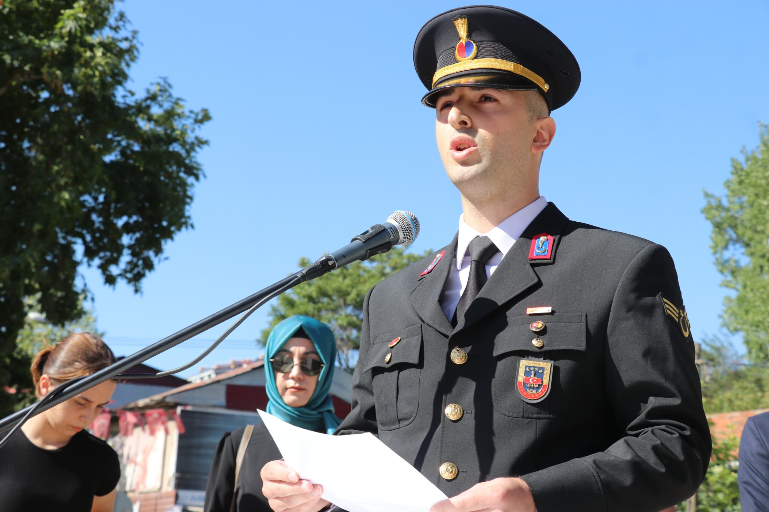 Daha sonra Şehit Sefa İzbudak Ortaokulu öğrencilerinden Sena Daşkan tarafından bir şiir okundu ve programın ilk bölümü sona ermiş oldu.