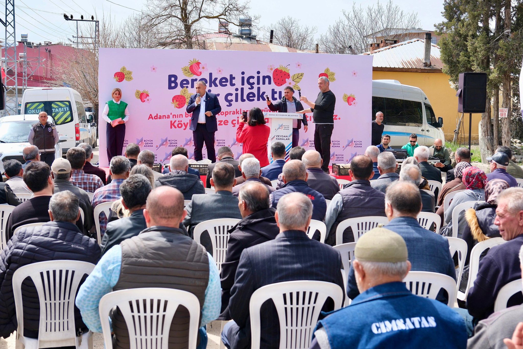 Kamışlı Mahallesinde düzenlenen çilek dağıtım törenine Adana Büyükşehir Belediye Başkan Vekili Güngör Geçer, Pozantı Kaymakamı Muhammet Cengiz, siyasiler, kooperatif başkanları, muhtarlar ve Pozantılıların katıldığı törende üreticilere 900 bin çilek fidesi dağıtıldı.