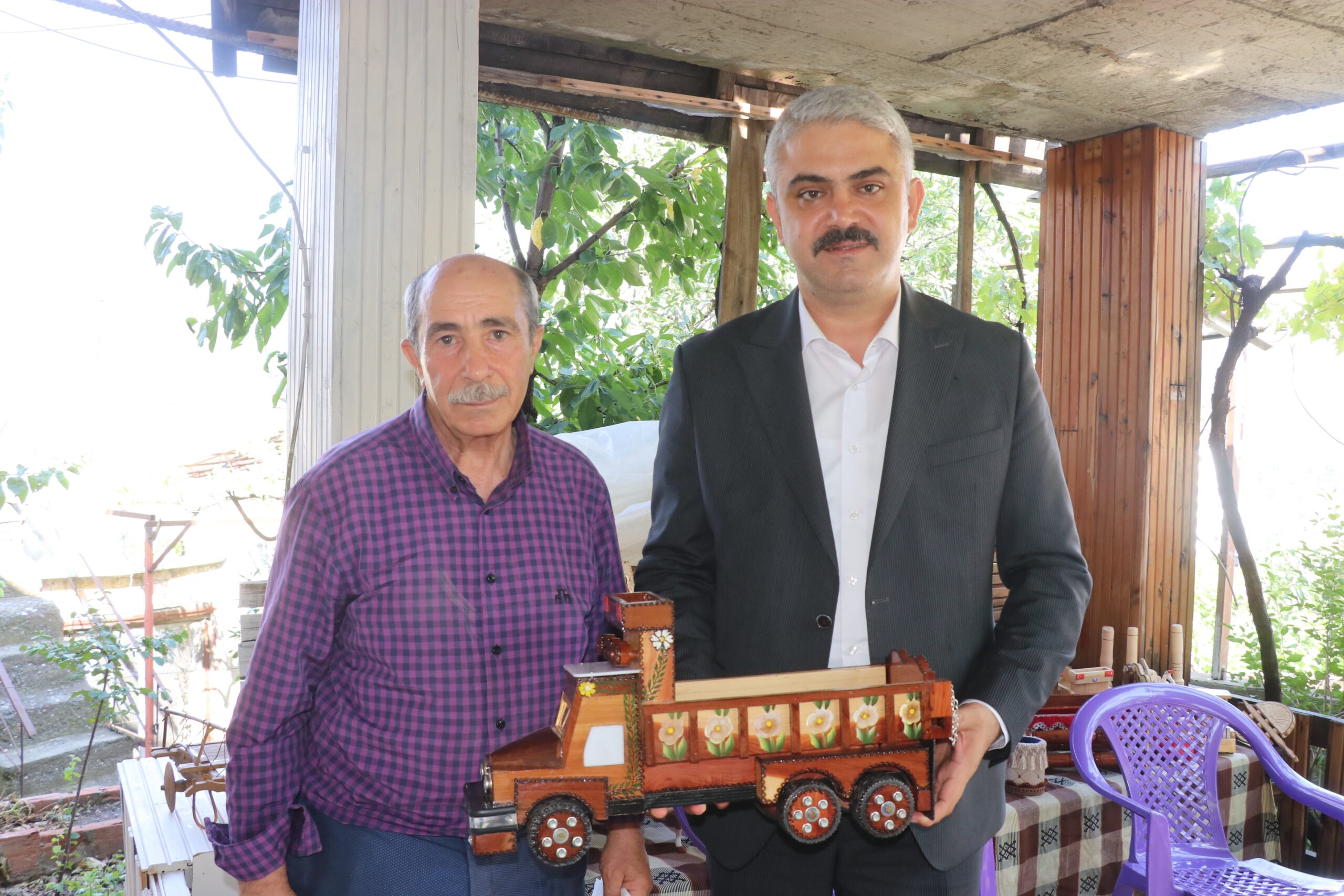 İlçe Kaymakamı Ekrem Güdek ve Belediye Başkanı Ali Avan, ahşap oyma ustası Ali Doğan’ı geçtiğimiz günlerde evinin bir odasını çevirdiği atölyesinde ziyaret ettiler. Ziyarette Ali Doğan’ın muhtelif ağaçlardan yapmış olduğu eserleri inceleyen Kaymakam Güdek ve Başkan Avan, Ali Doğan’ın tebrik ettiler.