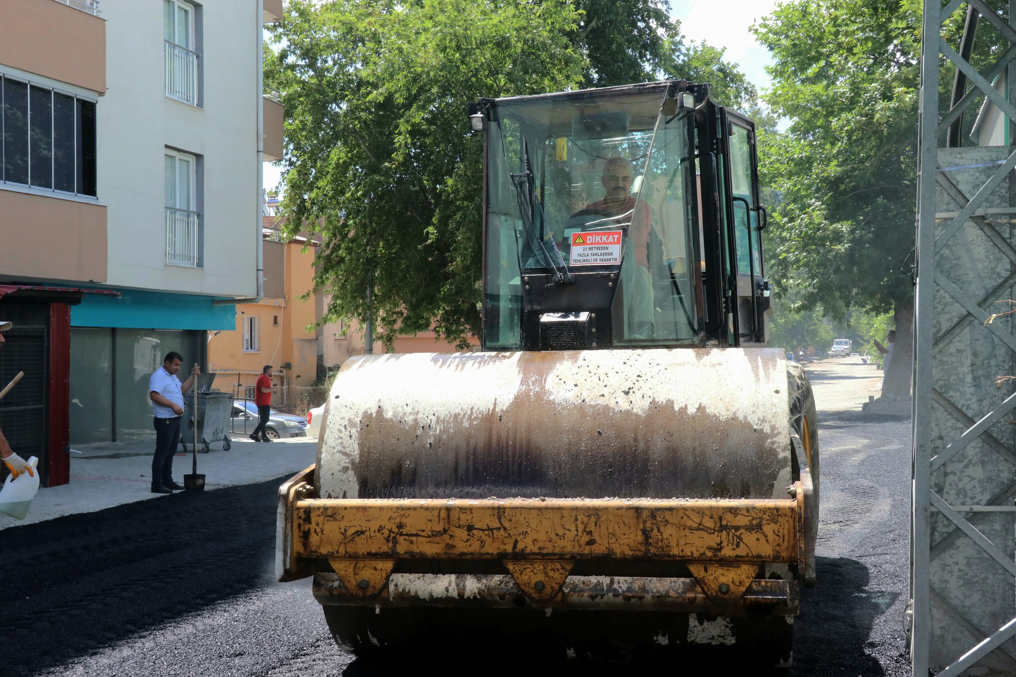 Belediye ekipleri tarafından Şehit Erhan Konuk Sokaktaki asfalt çalışmalarını yerinde inceleyen Başkan Ali Avan, silindir direksiyonuna geçerek dökülen asfaltı silindir kullanarak sıkılaştırdı. Silindir direksiyonuna geçerek personellerinin çalışmalarına katkıda bulunan Başkan Avan, kolay gelsin dileklerinde bulundu.
